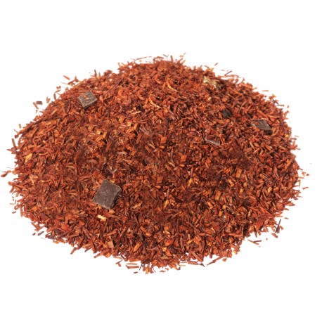 Ingrédients : Rooibos super grade, chocolat (sucre, pâte de cacao, beurre de cacao, émulsifiant : lécithine de soja E322), arôme.
